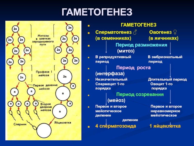 ♂ Овогенез ♀ (в семенниках) (в яичниках)