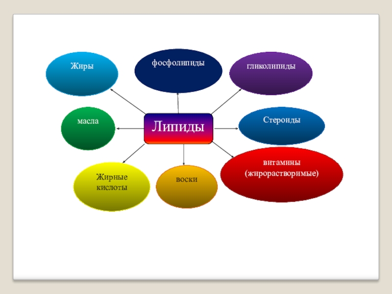 ЛипидыгликолипидыСтероидывитамины (жирорастворимые)воскиЖирные кислотымаслаЖирыфосфолипиды