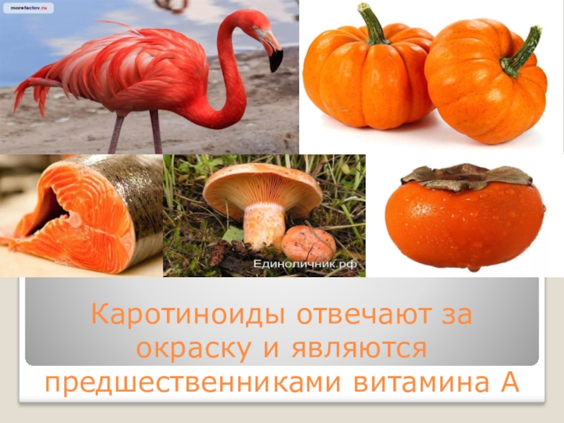 Слайд 16Каротиноиды отвечают за окраску и являются предшественниками витамина А