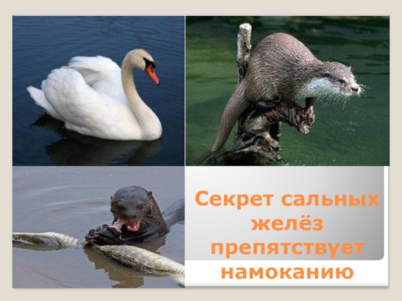 Слайд 18Секрет сальных желёз препятствует намоканию