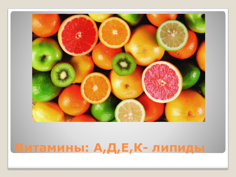 Слайд 8Витамины: А,Д,Е,К- липиды