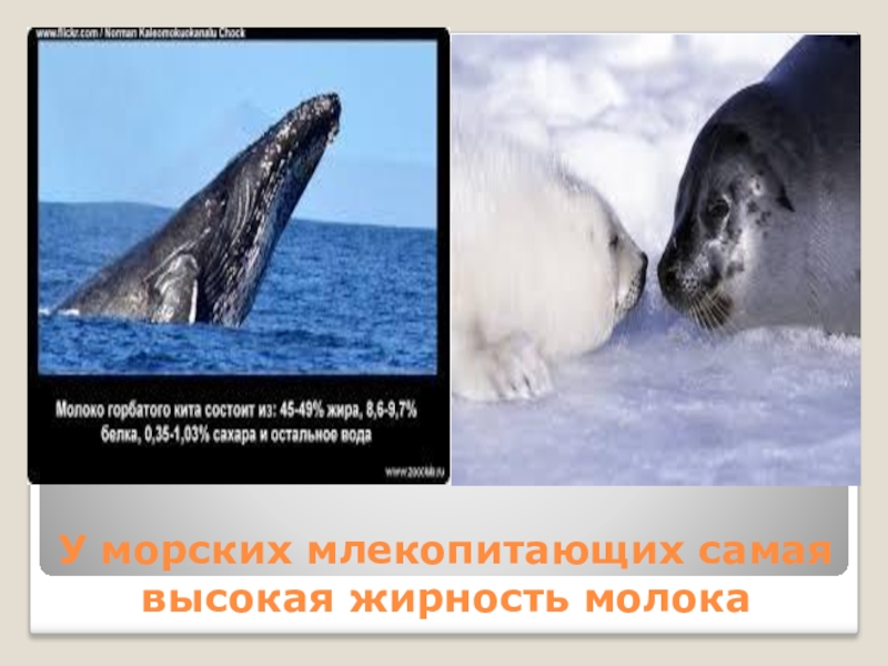 Слайд 15У морских млекопитающих самая высокая жирность молока