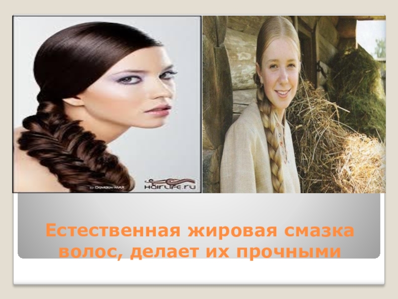 Слайд 23Естественная жировая смазка волос, делает их прочными