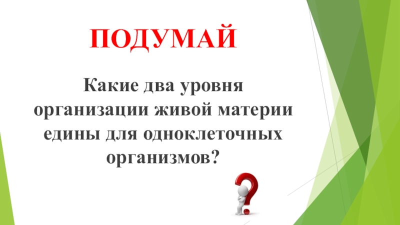 ПОДУМАЙКакие два уровня организации живой материи едины для одноклеточных организмов?