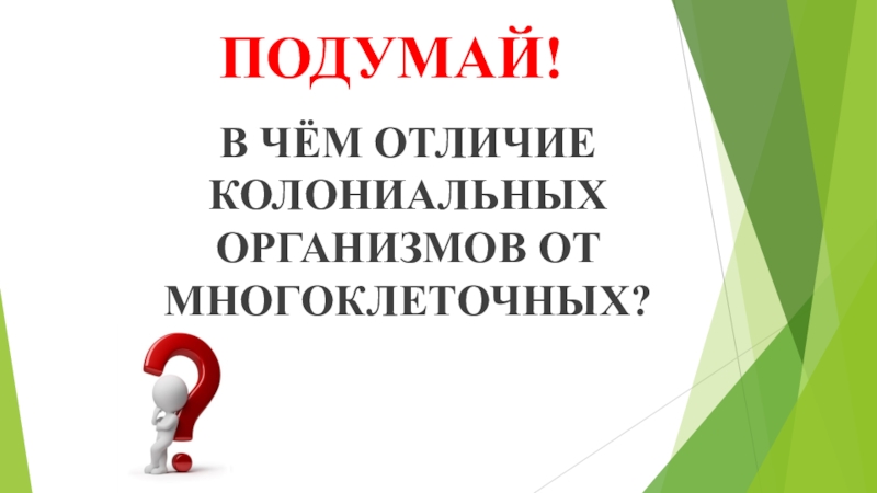 ПОДУМАЙ!В ЧЁМ ОТЛИЧИЕ КОЛОНИАЛЬНЫХ ОРГАНИЗМОВ ОТ МНОГОКЛЕТОЧНЫХ?