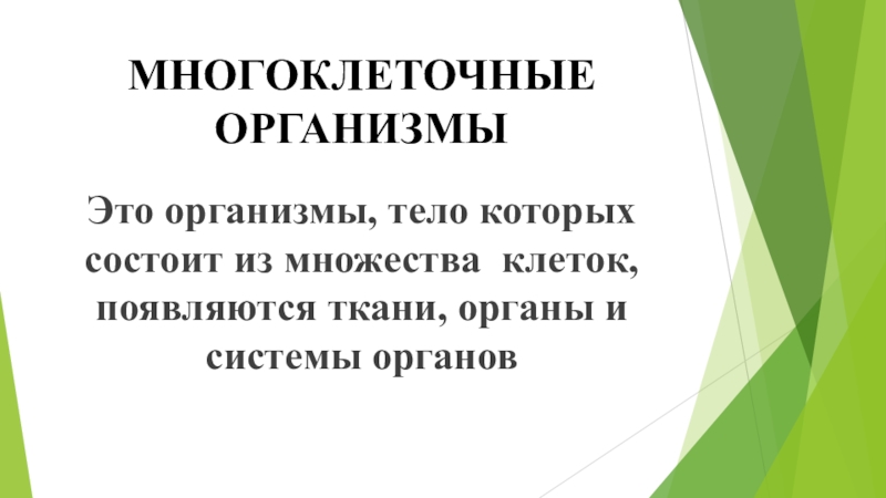 МНОГОКЛЕТОЧНЫЕ ОРГАНИЗМЫЭто организмы, тело которых состоит из множества клеток, появляются ткани, органы и системы органов