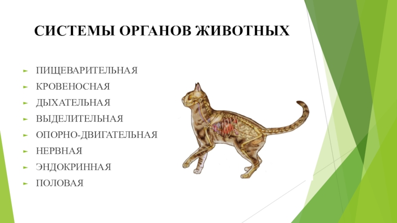 СИСТЕМЫ ОРГАНОВ ЖИВОТНЫХПИЩЕВАРИТЕЛЬНАЯКРОВЕНОСНАЯДЫХАТЕЛЬНАЯВЫДЕЛИТЕЛЬНАЯОПОРНО-ДВИГАТЕЛЬНАЯНЕРВНАЯЭНДОКРИННАЯПОЛОВАЯ
