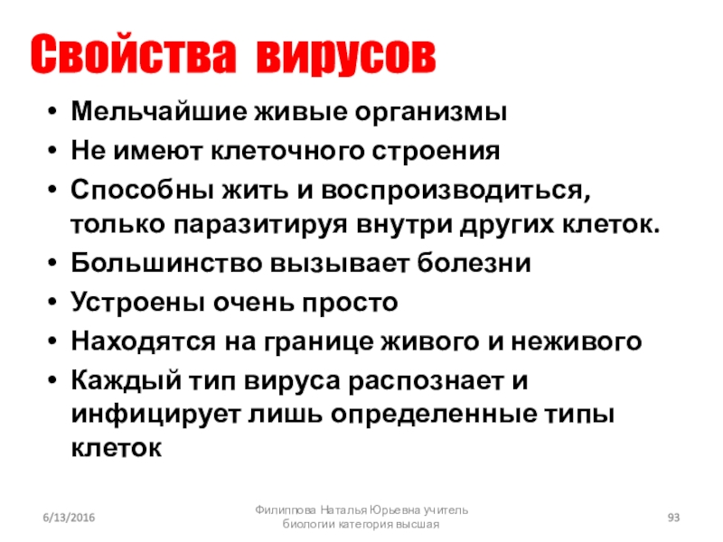 Филиппова Наталья Юрьевна учитель биологии категория высшая