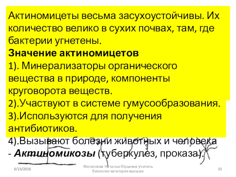 Актиномицеты весьма засухоустойчивы. Их количество велико в сухих почвах, там, где бактерии угнетены.