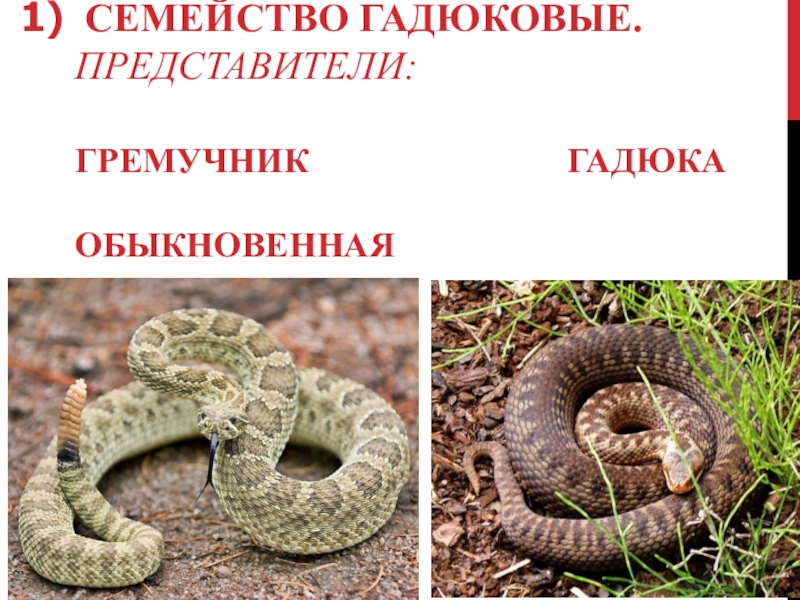 СЕМЕЙСТВО ГАДЮКОВЫЕ.  ПРЕДСТАВИТЕЛИ: ГРЕМУЧНИК