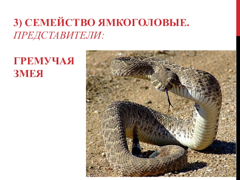3) СЕМЕЙСТВО ЯМКОГОЛОВЫЕ.  ПРЕДСТАВИТЕЛИ:   ГРЕМУЧАЯ