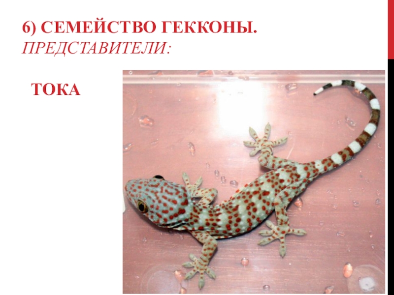 6) СЕМЕЙСТВО ГЕККОНЫ.  ПРЕДСТАВИТЕЛИ:    ТОКА