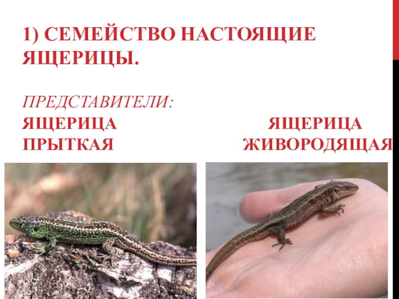 1) СЕМЕЙСТВО НАСТОЯЩИЕ ЯЩЕРИЦЫ.   ПРЕДСТАВИТЕЛИ:  ЯЩЕРИЦА