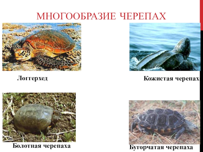 МНОГООБРАЗИЕ ЧЕРЕПАХЛоггерхедКожистая черепахаБолотная черепахаБугорчатая черепаха