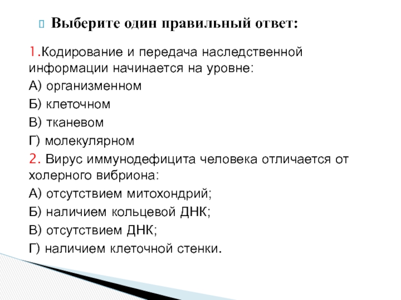 Слайд 23Выберите один правильный ответ:
