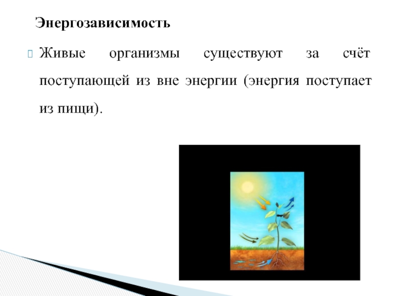 Живые организмы существуют за счёт поступающей из вне энергии