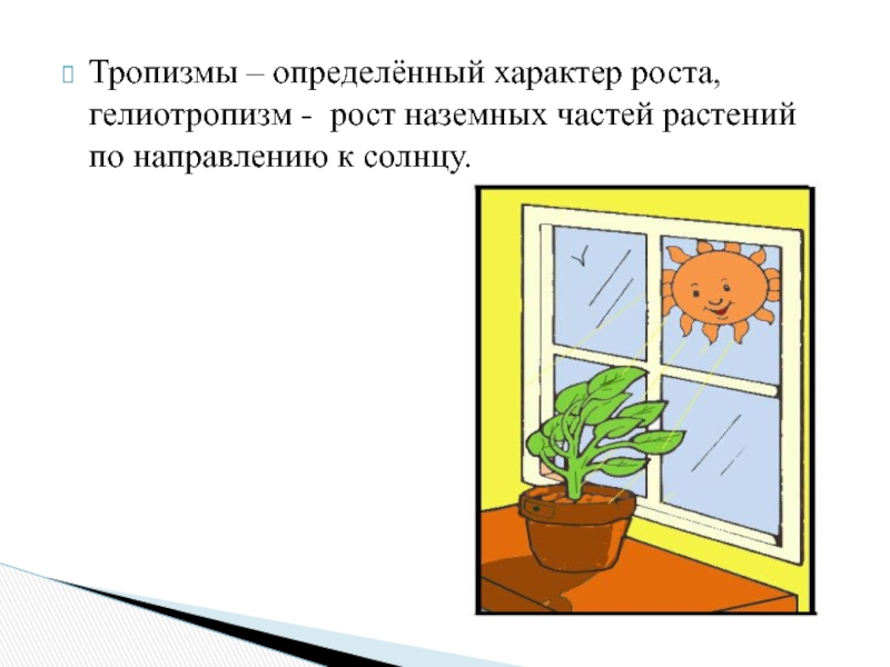 Слайд 17Тропизмы – определённый характер роста, гелиотропизм - рост наземных частей растений