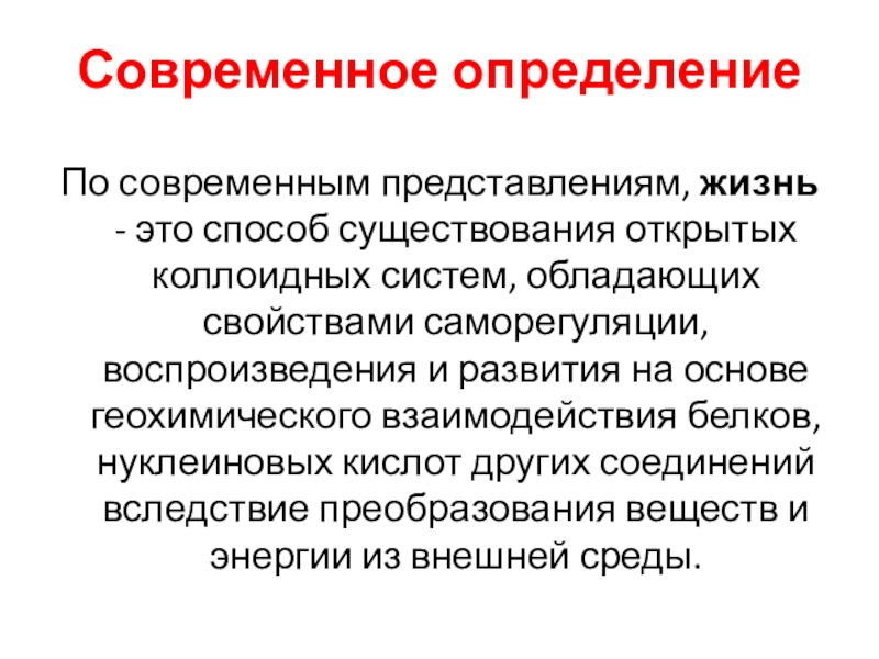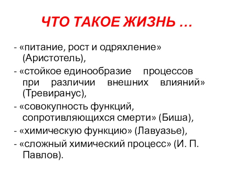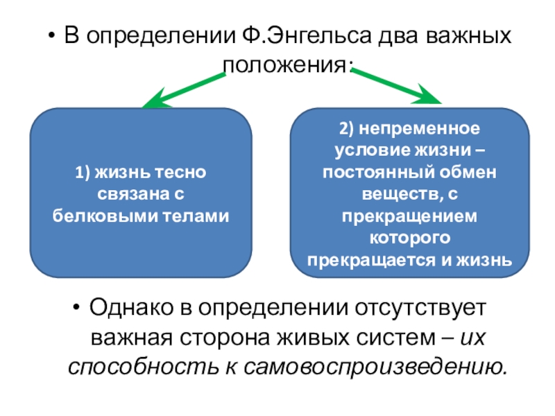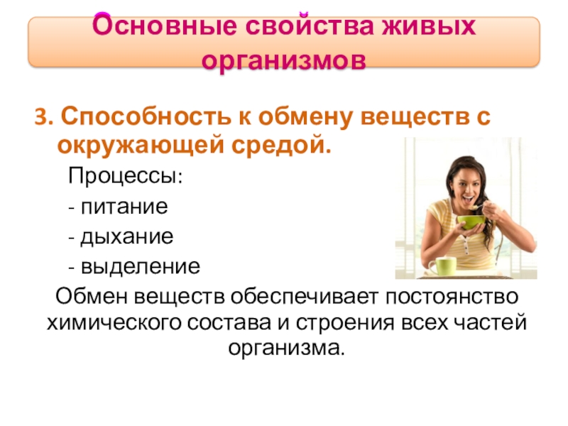 2) непременное условие жизни – постоянный обмен веществ, с прекращением которого прекращается и жизнь