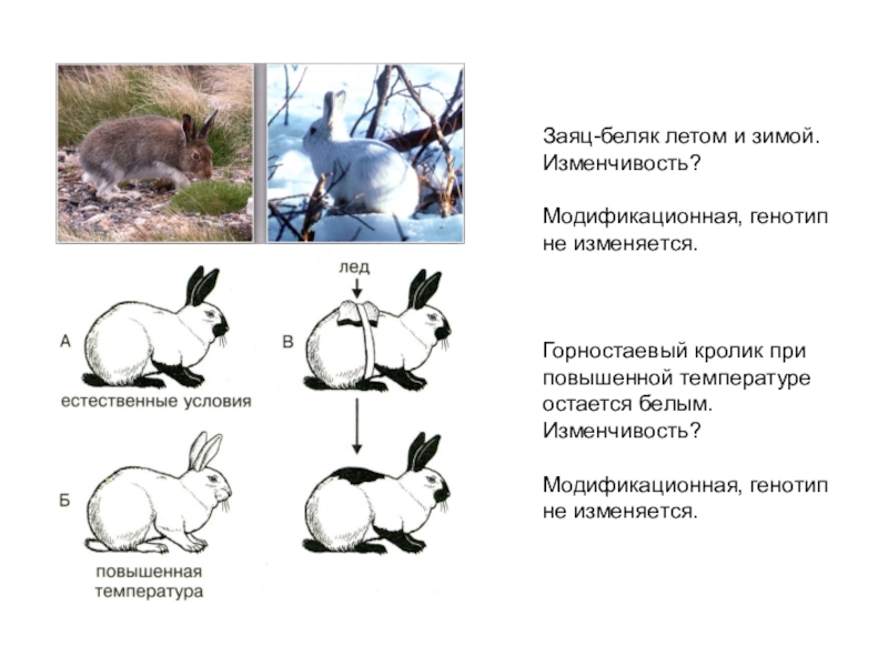 Слайд 5Заяц-беляк летом и зимой. Изменчивость?