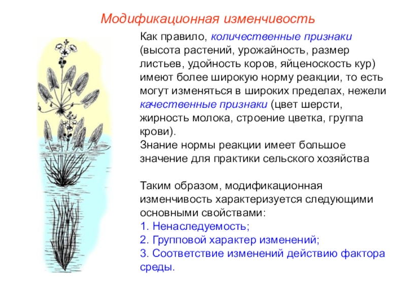 Таким образом, модификационная изменчивость характеризуется следующими основными свойствами: