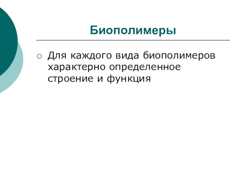 БиополимерыДля каждого вида биополимеров характерно определенное строение и функция
