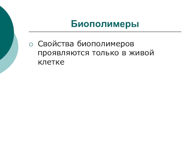 БиополимерыСвойства биополимеров проявляются только в живой клетке