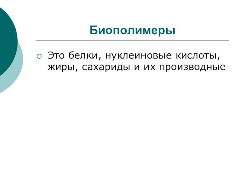 БиополимерыЭто белки, нуклеиновые кислоты, жиры, сахариды и их производные