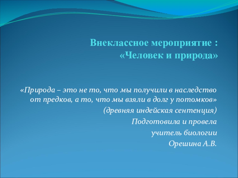 получили в наследство от предков, а то, что мы взяли в долг у потомков»
