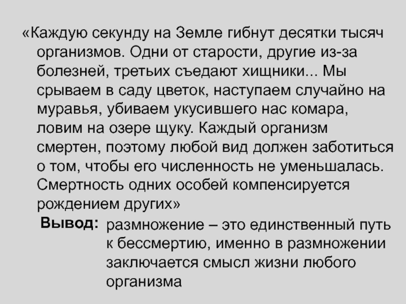 размножение – это единственный путь к бессмертию, именно в размножении заключается смысл жизни любого организма