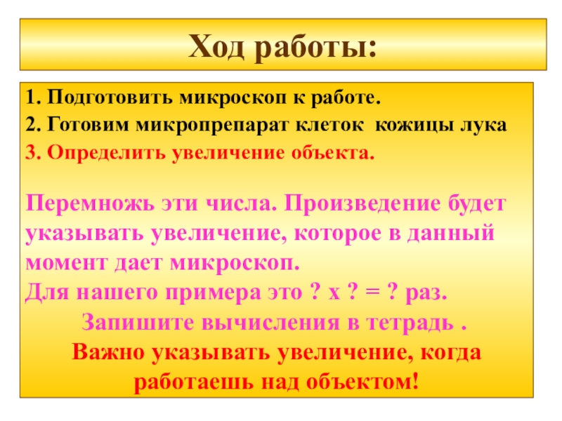 Перемножь эти числа. Произведение будет указывать увеличение, которое в данный момент дает микроскоп.