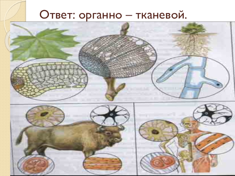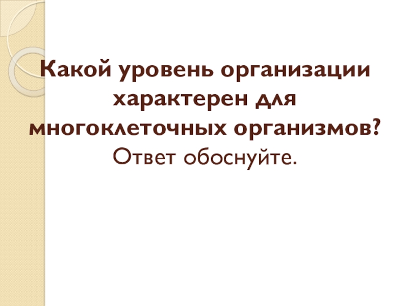 Слайд 3 Какой уровень организации характерен для многоклеточных организмов? Ответ обоснуйте.