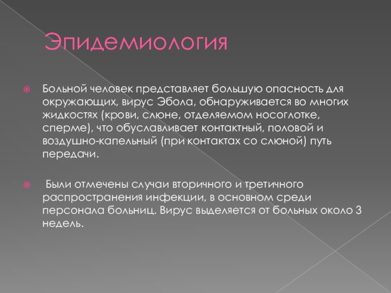 Больной человек представляет большую опасность для окружающих, вирус Эбола, обнаруживается во