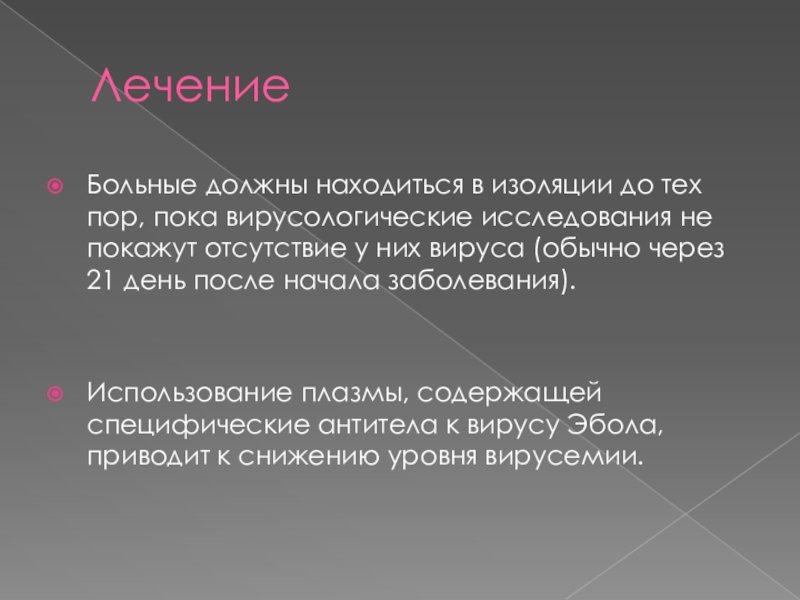 Использование плазмы, содержащей специфические антитела к вирусу Эбола, приводит к снижению уровня вирусемии.