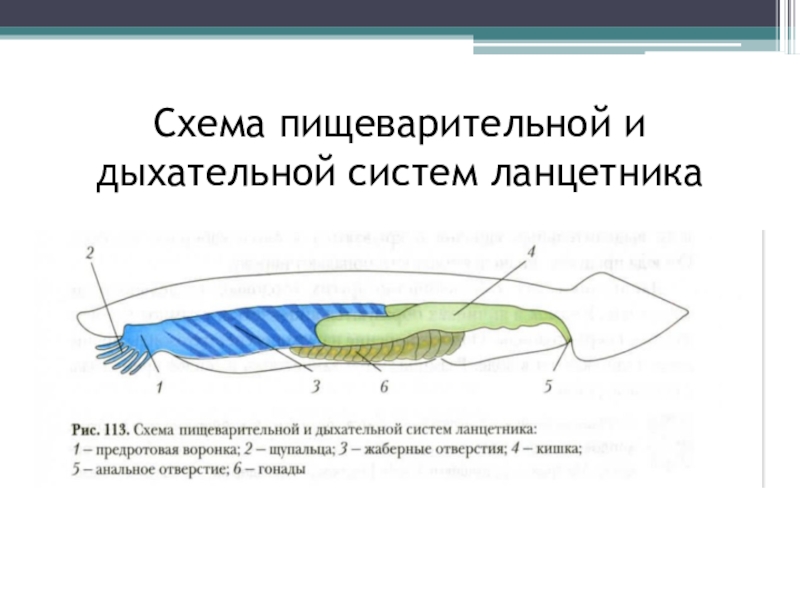 Слайд 11Схема пищеварительной и дыхательной систем ланцетника