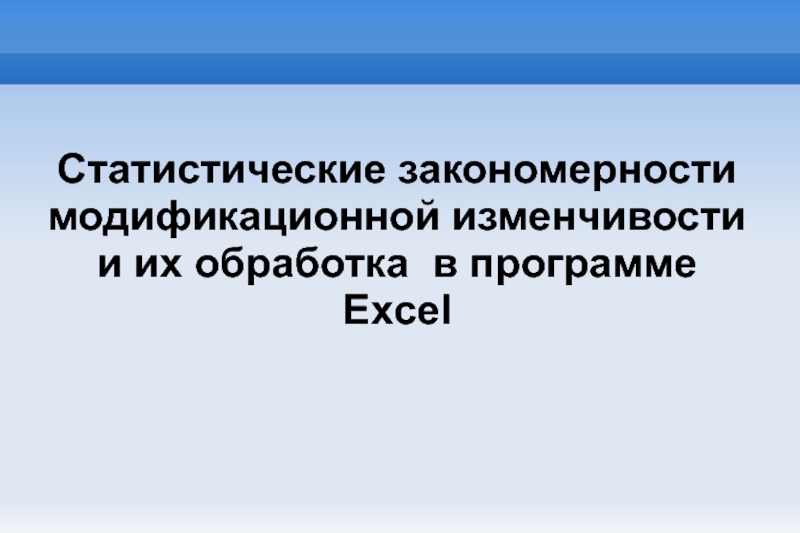 Слайд 1Статистические закономерности модификационной изменчивости и их обработка в программе Excel