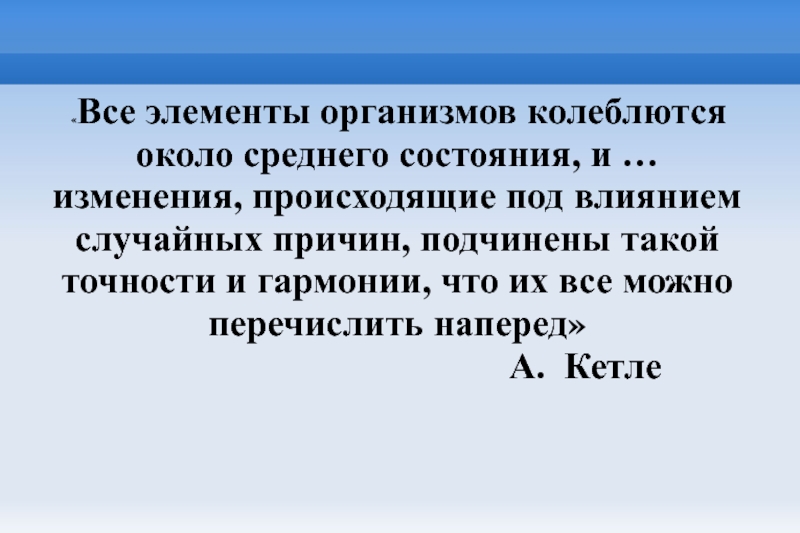 «Все элементы организмов колеблются около среднего состояния, и … изменения, происходящие под влиянием случайных причин, подчинены