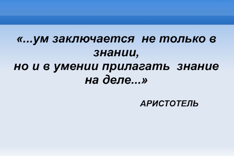 «...ум заключается не только в знании, но и в умении прилагать знание на деле...» АРИСТОТЕЛЬ