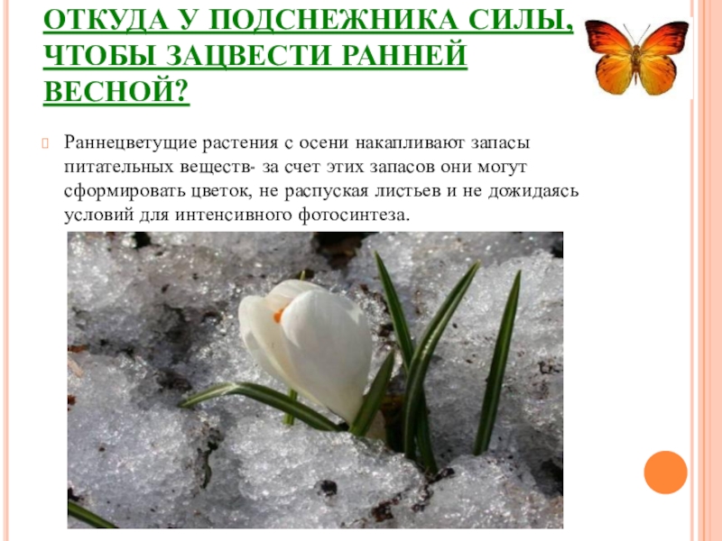 Слайд 16ОТКУДА У ПОДСНЕЖНИКА СИЛЫ, ЧТОБЫ ЗАЦВЕСТИ РАННЕЙ ВЕСНОЙ?