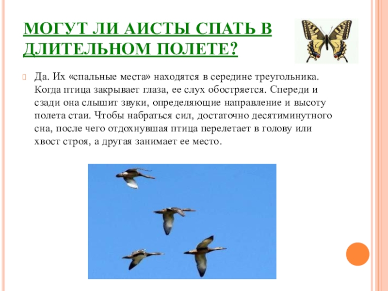 Слайд 3МОГУТ ЛИ АИСТЫ СПАТЬ В ДЛИТЕЛЬНОМ ПОЛЕТЕ?