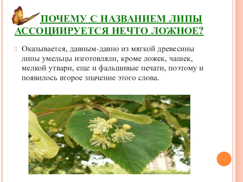 Слайд 9 ПОЧЕМУ С НАЗВАНИЕМ ЛИПЫ