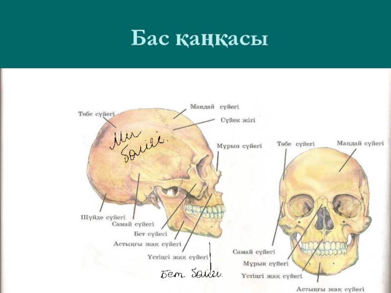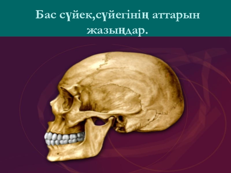 Слайд 24Бас сүйек,сүйегінің аттарын жазыңдар.