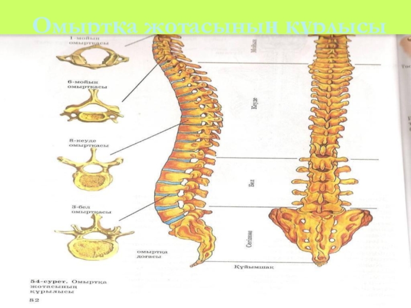 Слайд 17Дене қаңқасы: омыртқа жотасы, кеуде қуысы