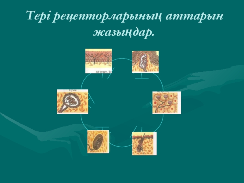 Слайд 5Тері рецепторларының аттарын жазыңдар.