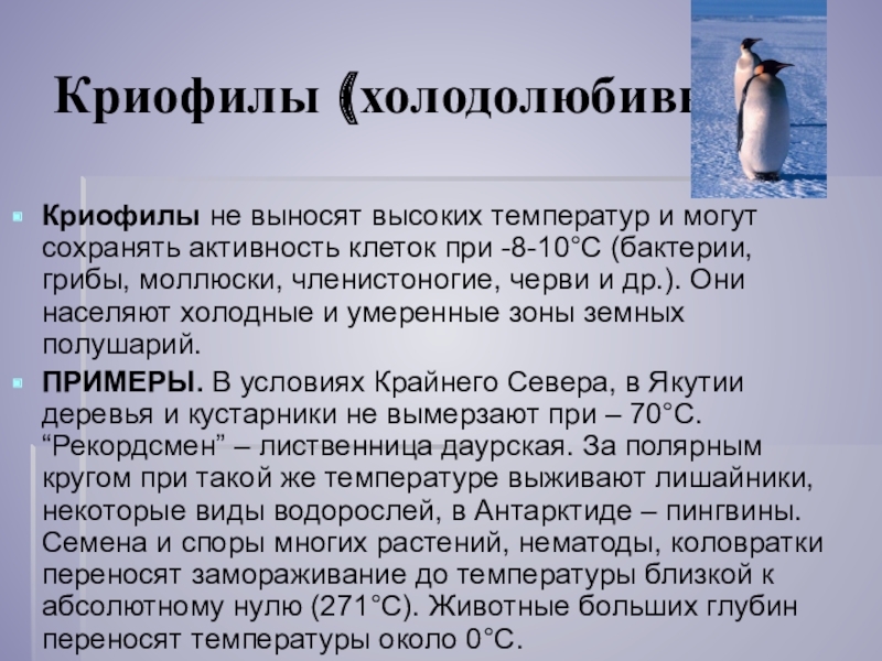 но обитающих организмов и условий их
