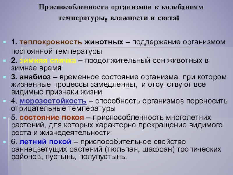 факторов среды.