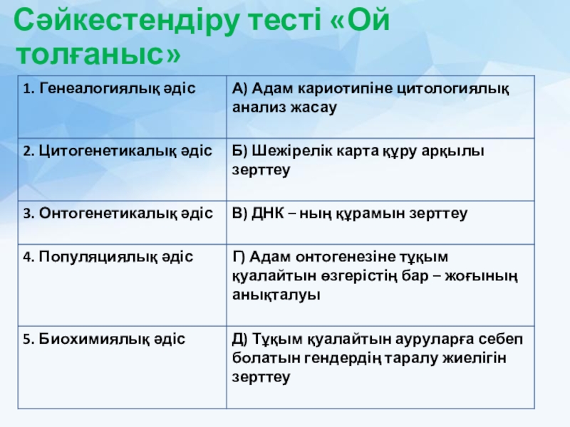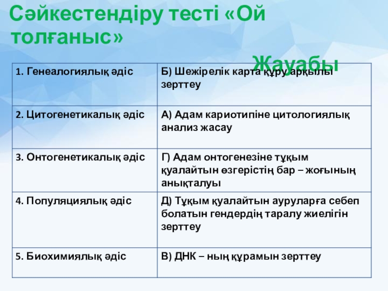 Кейбір тұқым қуалайтын аурулардың зат алмасу процесінің бұзылуынан болатынын анықтайды.