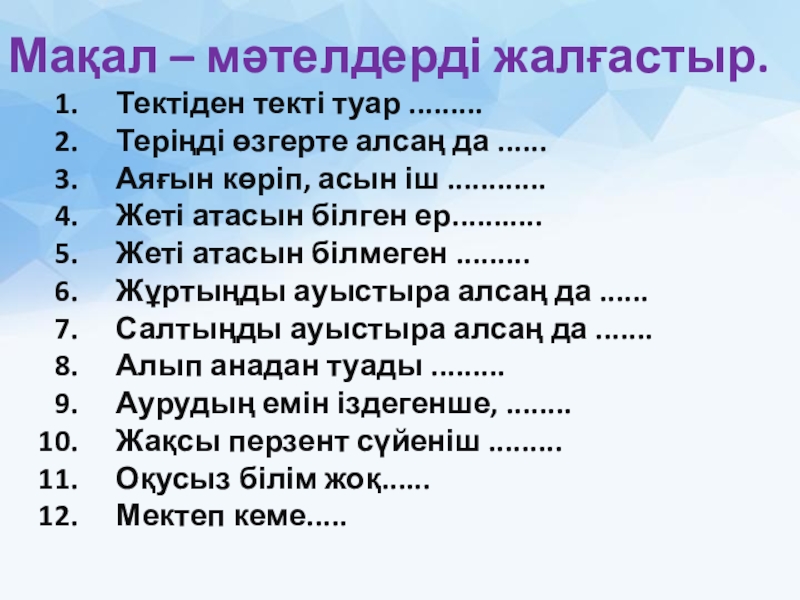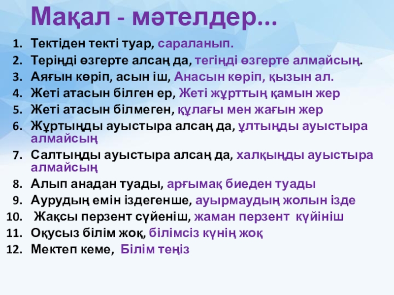 ӘР ТҮРЛІ БІЛІМ КӨЗДЕРІН ҚОЛДАНА БІЛУ, ОЙЛАРЫН САЛЫСТЫРУҒА, АНАЛИЗДЕУГЕ, ҚОРЫТЫНДЫЛАУҒА ҮЙРЕТУ.