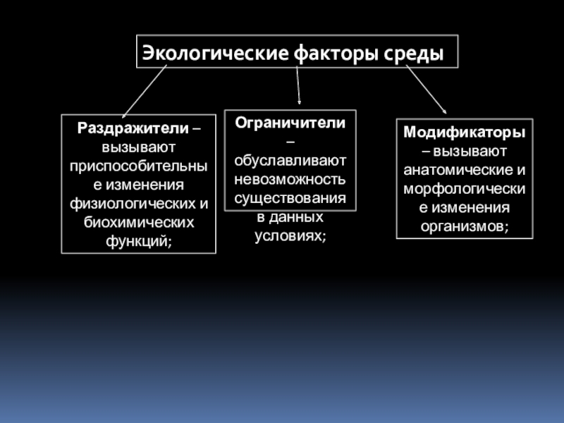 Модификаторы – вызывают анатомические и морфологические изменения организмов;