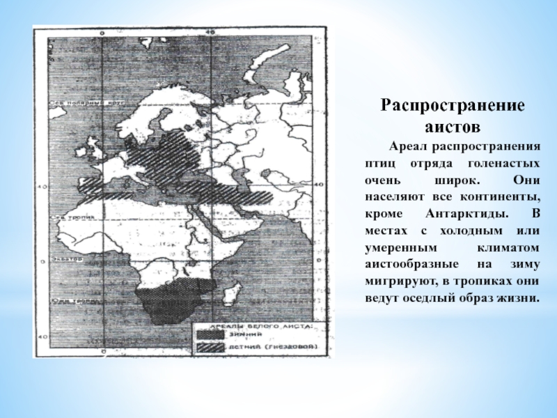 1. Рассмотрение основного ареала распространения белого аиста на территории России и мест зимовок этих птиц.