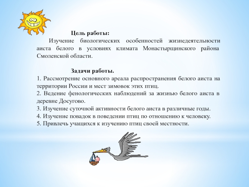 Изучение биологических особенностей жизнедеятельности аиста белого в условиях климата Монастырщинского